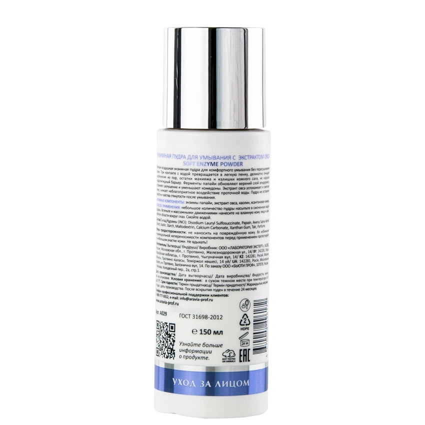 ARAVIA Laboratories, Энзимная пудра для умывания с экстрактом овса Soft Enzyme Powder, 150 мл