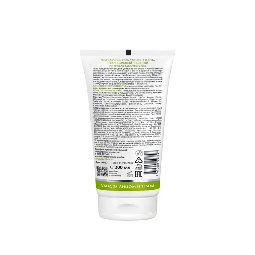 ARAVIA Laboratories, Очищающий гель для лица и тела с салициловой кислотой Anti-Acne gel, 200 мл