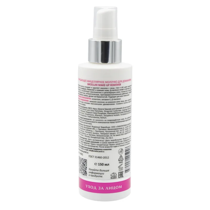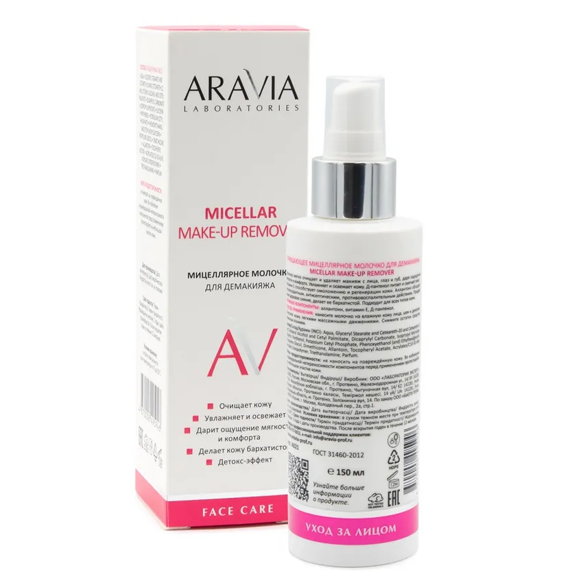ARAVIA Laboratories, Очищающее мицеллярное молочко для демакияжа Micellar Make-Up, 150 мл