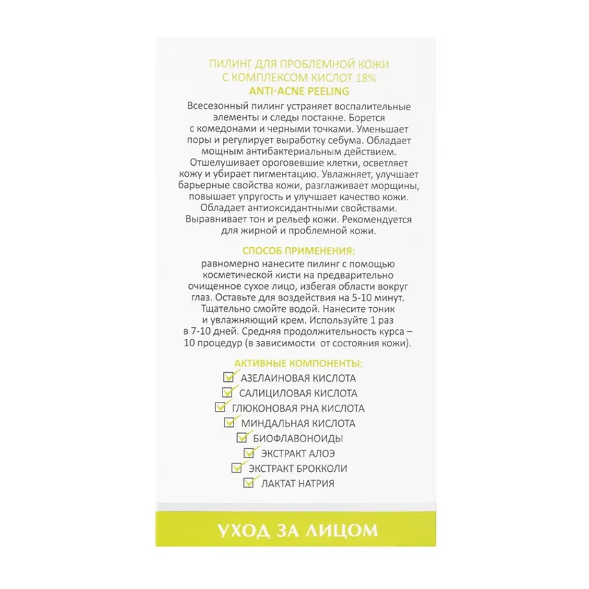 ARAVIA Laboratories, Пилинг для проблемной кожи с комплексом кислот 18% Anti-Acne Peeling, 50 мл